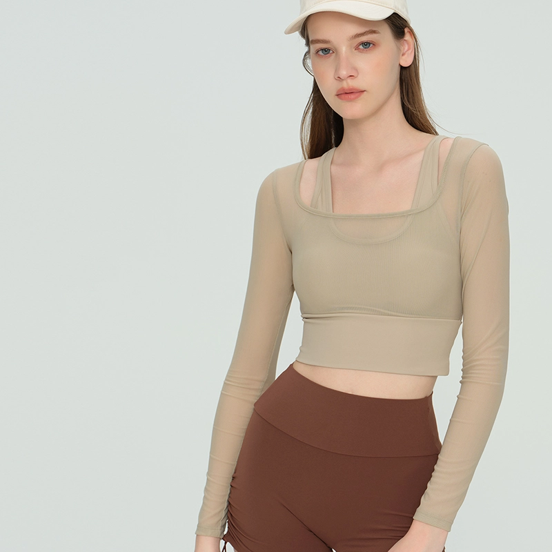 This 2-in-1 sports top features naked feel fabric and a built-in bra for convenience. Quick-dry and breathable, it’s perfect for yoga, gym training, and performance sports like tennis.