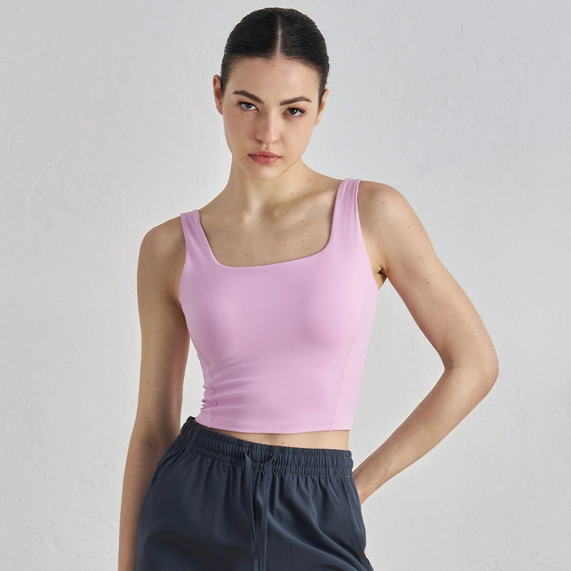 This one-piece fixed-cup sports bra offers secure lift and stable shaping for yoga, running, and high-mobility training. The streamlined tank design enhances coverage while delivering all-day comfort and reliable support. Built for active performance with a clean, functional look.