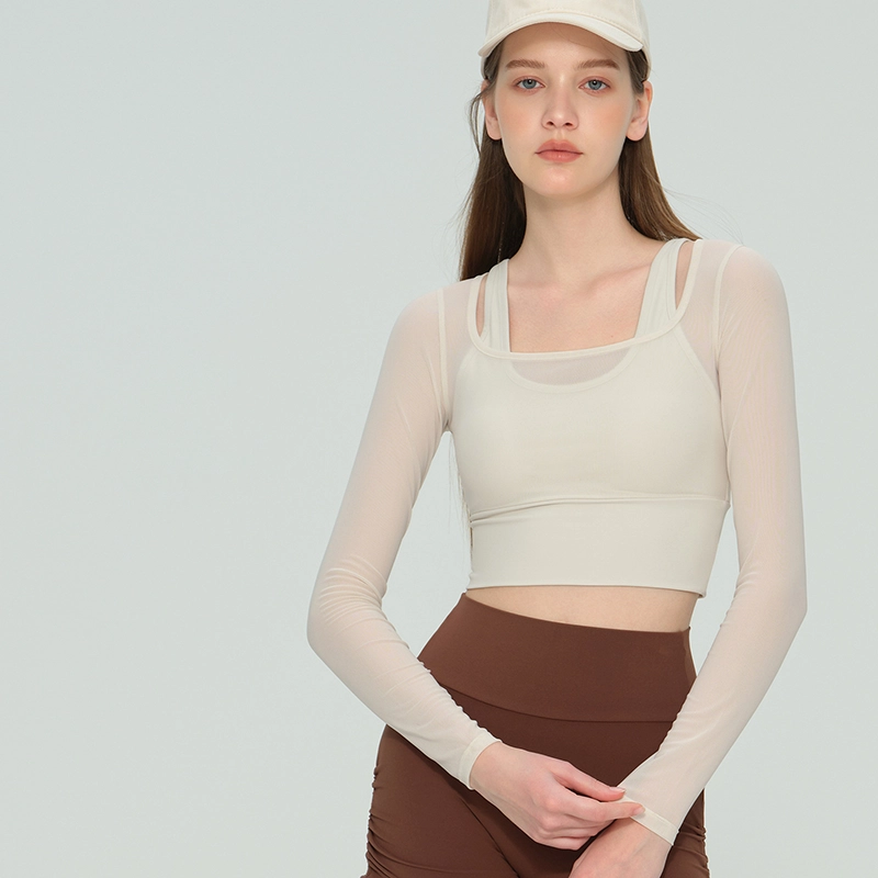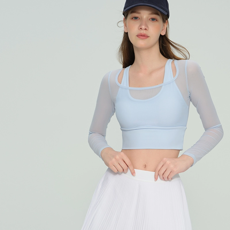 This faux-two-piece yoga top pairs a sleek naked-feel fabric with quick-dry breathability, giving you lightweight coverage for yoga flow, tennis practice, and everyday training. Integrated pads stay secure, while the streamlined silhouette supports flexible, high-mobility movement.