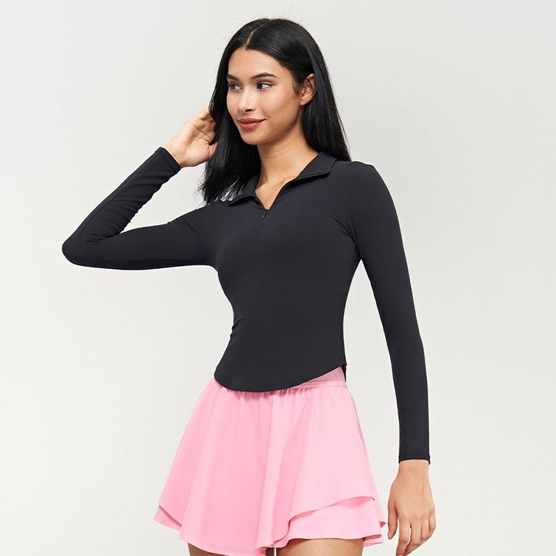 Custom Stylish Stand Collar Gym Top Slimming Long Sleeve