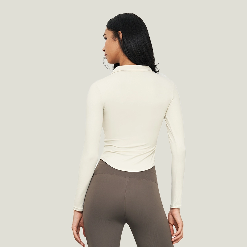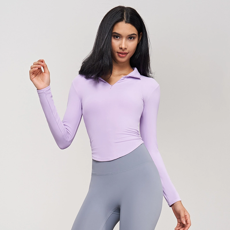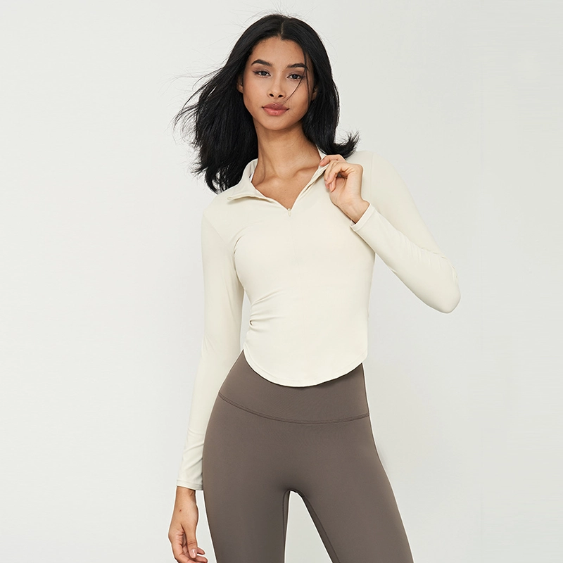 This chic, stand-collar, cropped long-sleeve offers a waist-cinching, slimming effect. Its high-quality design is suitable for yoga, fitness training, and sophisticated outdoor athletic wear.